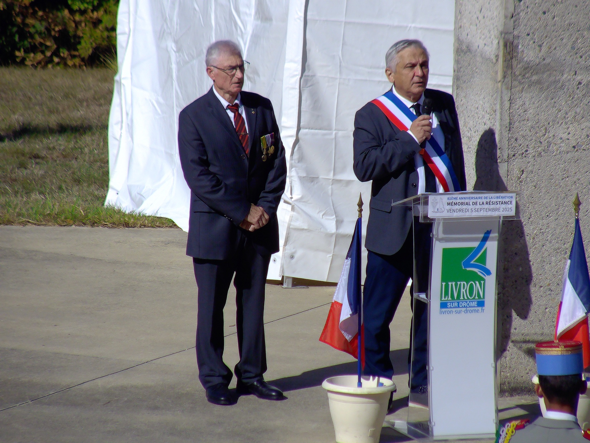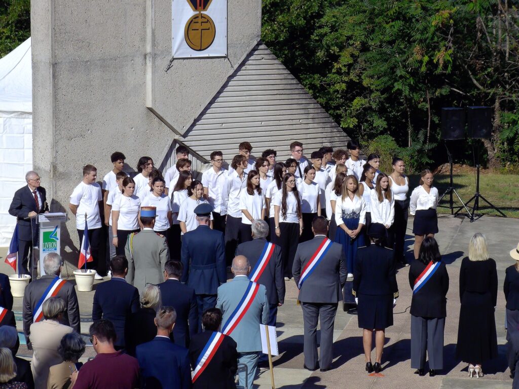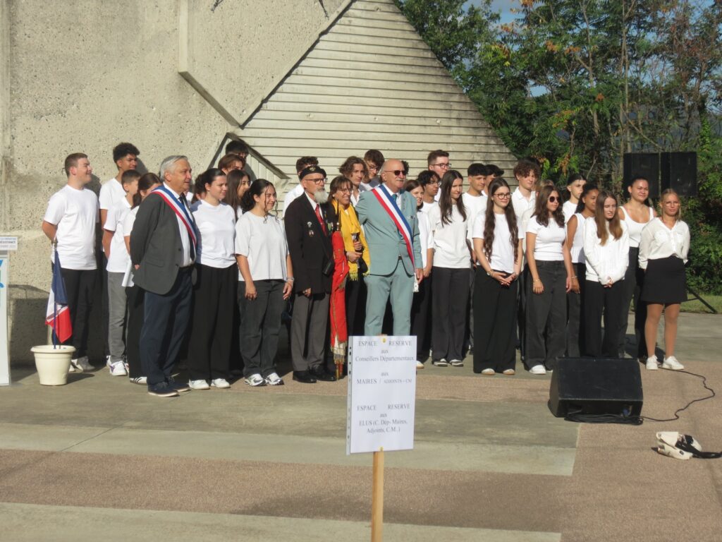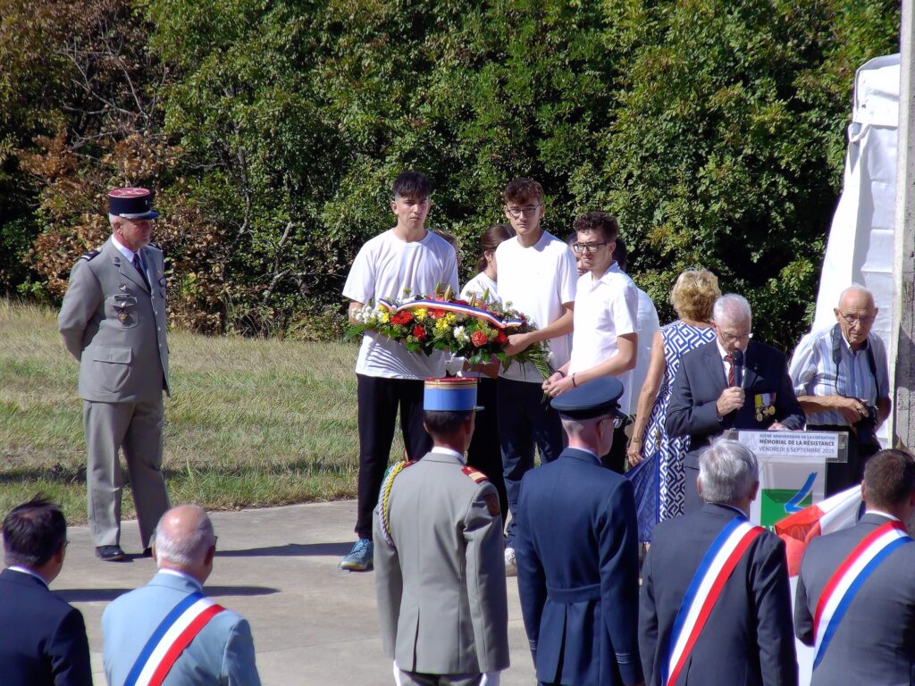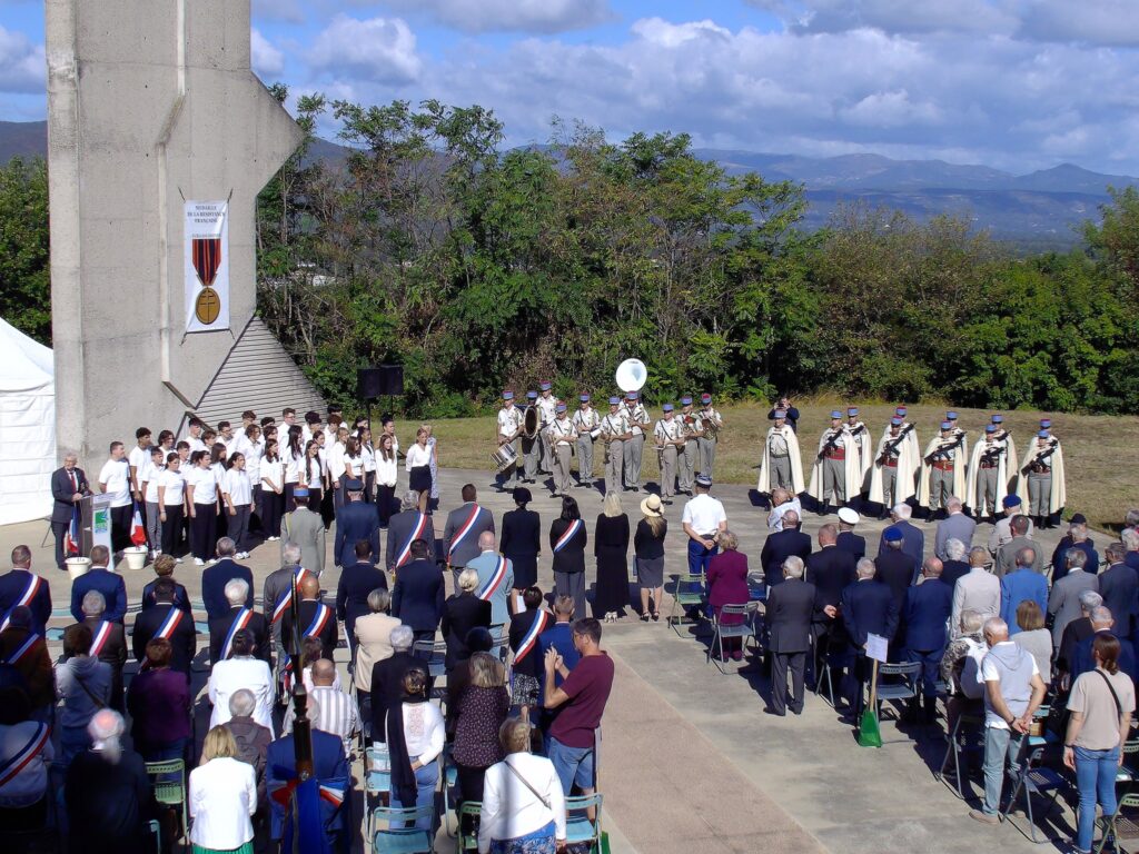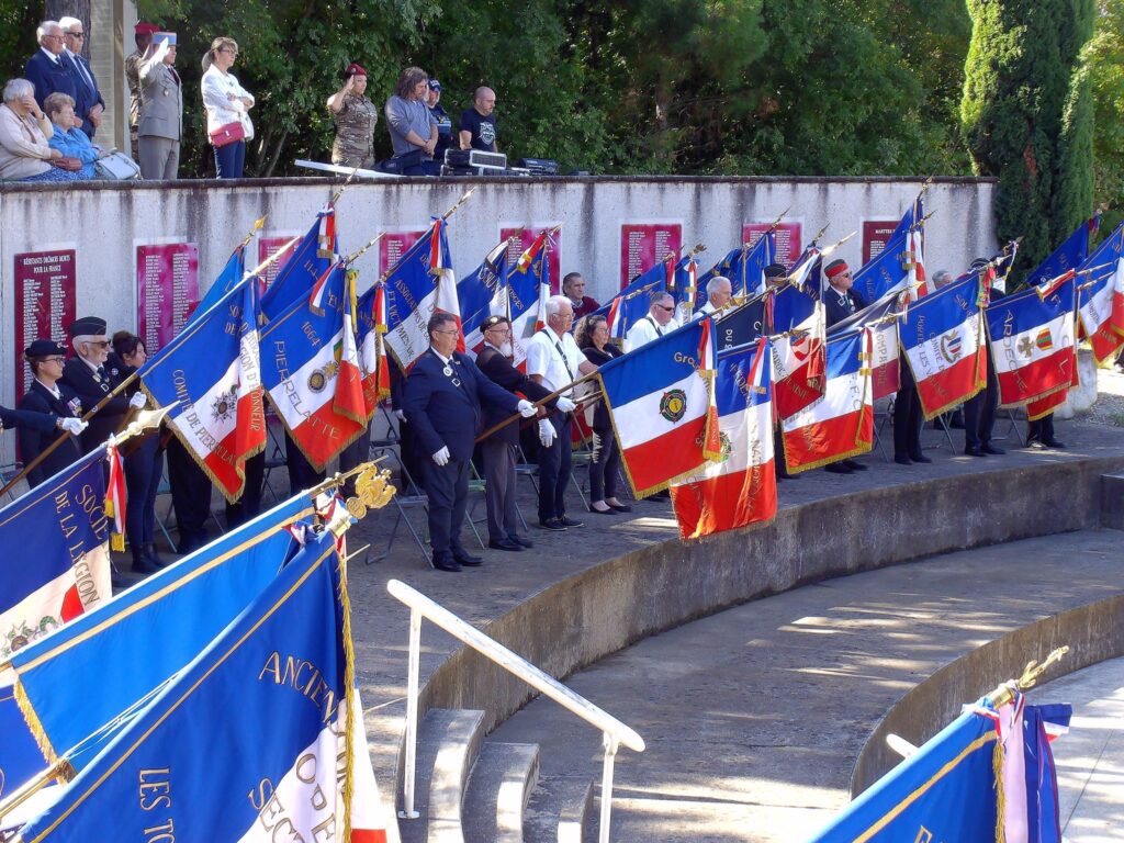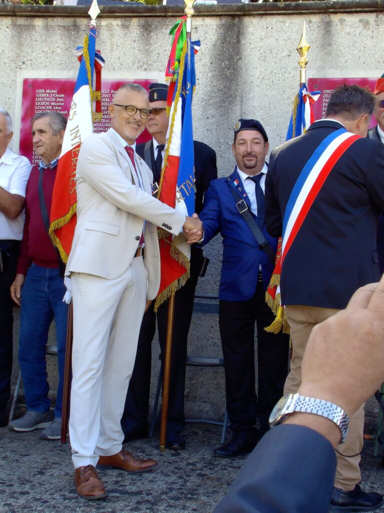 Très belle cérémonie pour le 81°Anniversaire de la libération de la Drôme, en compagnie de Mme la Sous-Préfète de la Drôme, un Commandant de la Royal Air Force, un Capitaine de la Légion Américaine, Mme la Consule Américaine de Lyon, un Colonel de la Gendarmerie, Mme la Député de Pierrelatte, les Maires des alentours, la Fanfare et un Peloton des SPAHIS, environ 60 Portes Drapeaux, ainsi que de nombreuses Associations, de nombreuses personnes civiles et la présence de deux Anciens Combattants ( dont Mr Jean Béolet ) , le tout sous l’escorte de la Gendarmerie. Une cérémonie vraiment très émouvante qui s’est déroulée le 05 septembre 2025 à Mirmande.